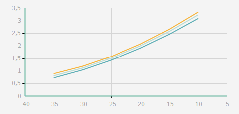 | 蒸發溫度 | 制冷量+/-5% | 能耗+/-5% | 現在能效+/-5% | 氣體流速+/-5% | 能效+/-7% | ||||